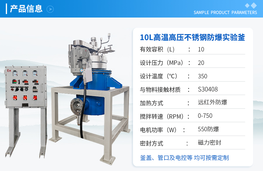 其他附件 如果用户在釜盖、釜体开口、内部结构、压力高低、搅拌桨叶、及增加其他辅助装置(如冷凝回流装置、冷凝器、恒压加料罐、接收装置)等有特殊要求,可完全按用户的要求加工制造