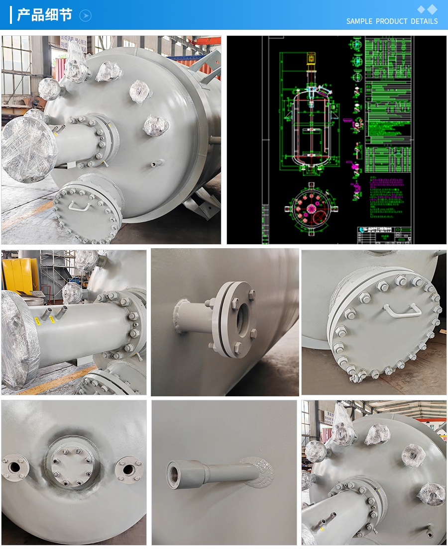 主要材料 釜体材料主要采用不锈钢与碳钢复合材质 S30408(304)+Q345R、S31603(316L) +Q345R、S32168(321)+Q345R, 也可是纯不锈钢材质,并可根据不同介质要求制作钛材、镍材、锆材、哈氏合金、蒙耐尔合金等复合材质反应釜,也可根据客户要求主要材料喷涂四氟PTFE/PPL。