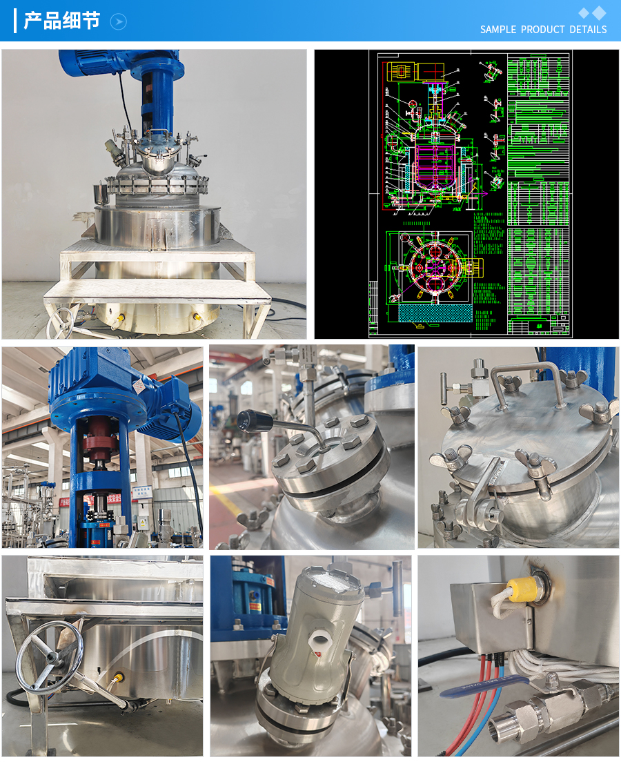 其他附件 如果用户在釜盖、釜体开口、内部结构、压力高低、搅拌桨叶、及增加其他辅助装置(如冷凝回流装置、冷凝器、恒压加料罐、接收装置)等有特殊要求,可完全按用户的要求加工制造