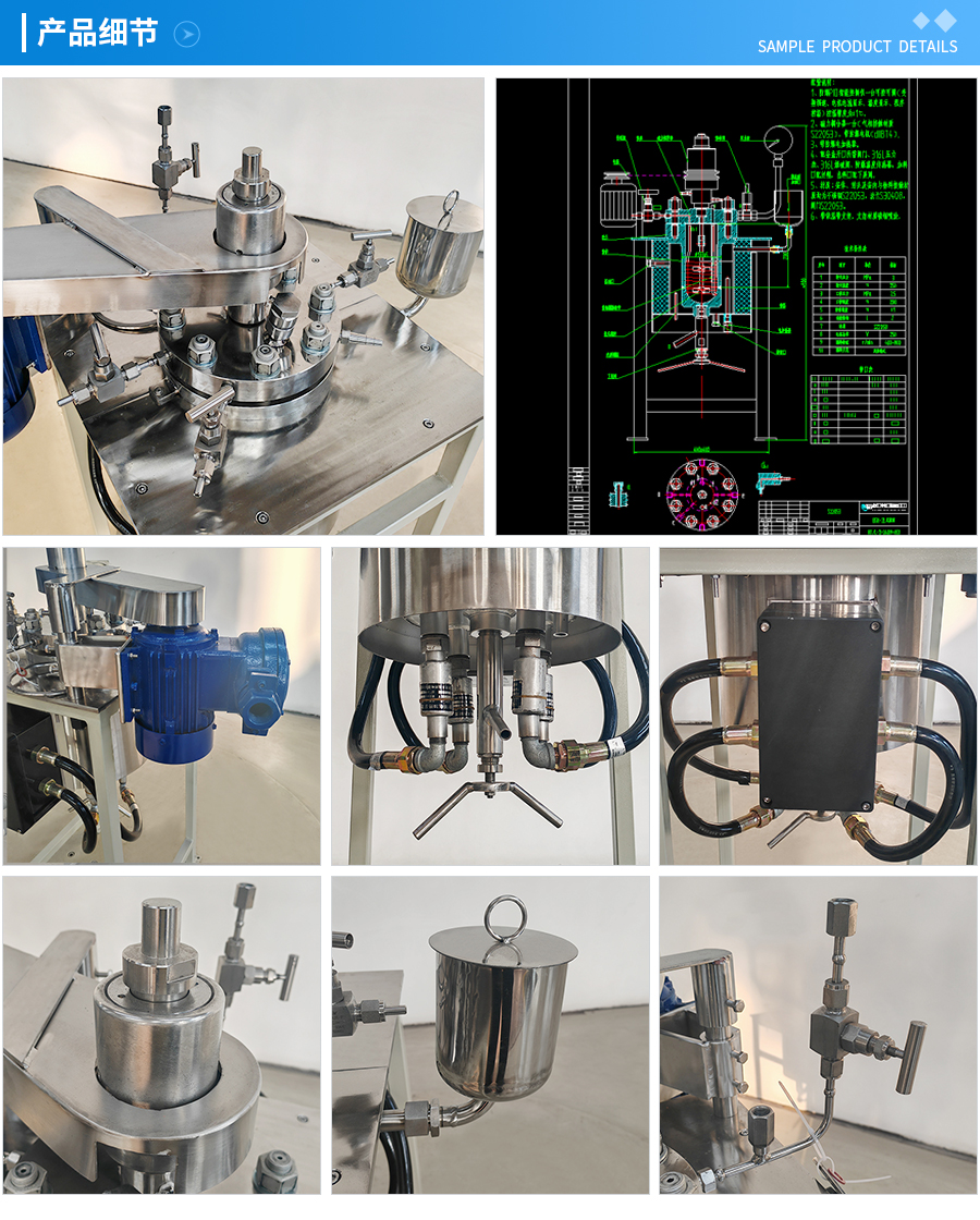 其他附件 如果用户在釜盖、釜体开口、内部结构、压力高低、搅拌桨叶、及增加其他辅助装置(如冷凝回流装置、冷凝器、恒压加料罐、接收装置)等有特殊要求,可完全按用户的要求加工制造