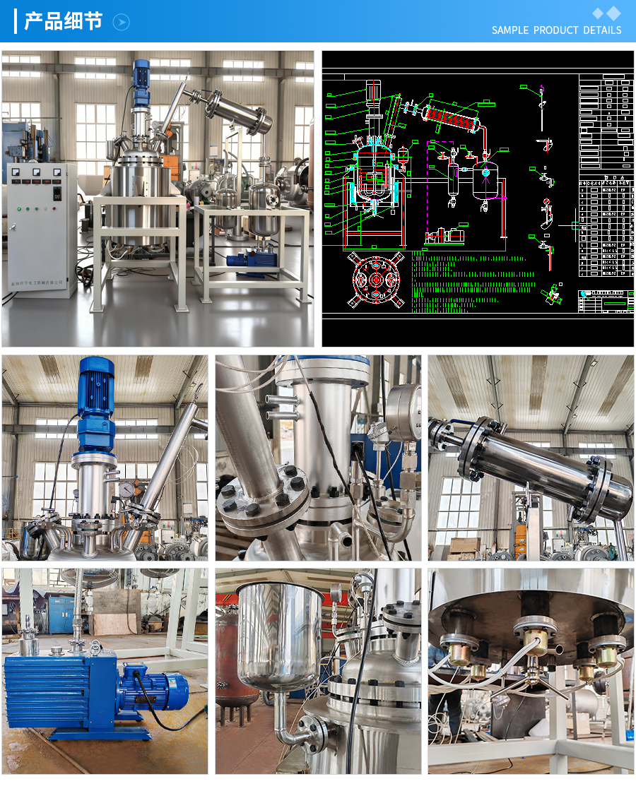 其他附件 如果用户在釜盖、釜体开口、内部结构、压力高低、搅拌桨叶、及增加其他辅助装置(如冷凝回流装置、冷凝器、恒压加料罐、接收装置)等有特殊要求,可完全按用户的要求加工制造